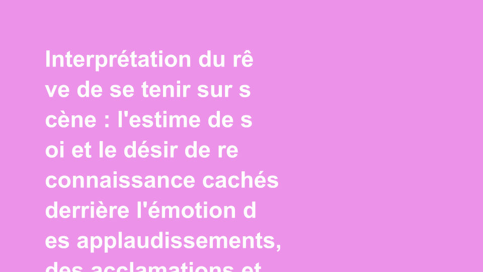 Tags : rêve, interprétation, estime de soi, reconnaissance, psychologie des rêves, analyse des rêves, développement personnel, confiance en soi, symbolisme, émotions